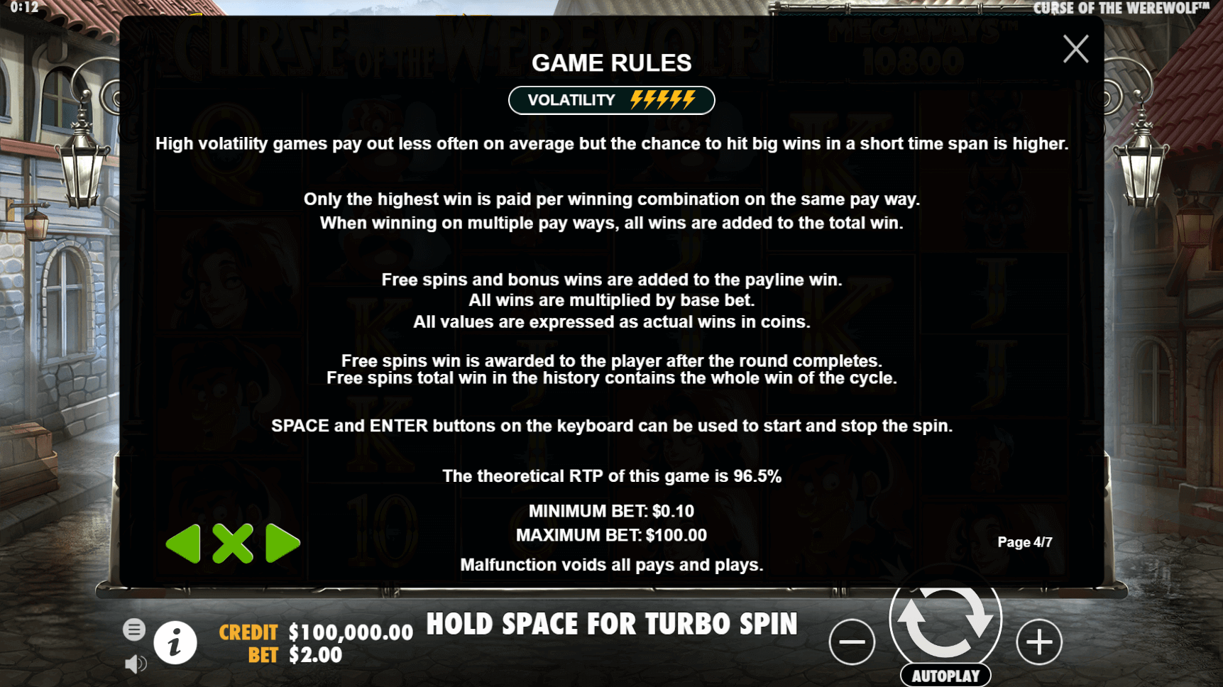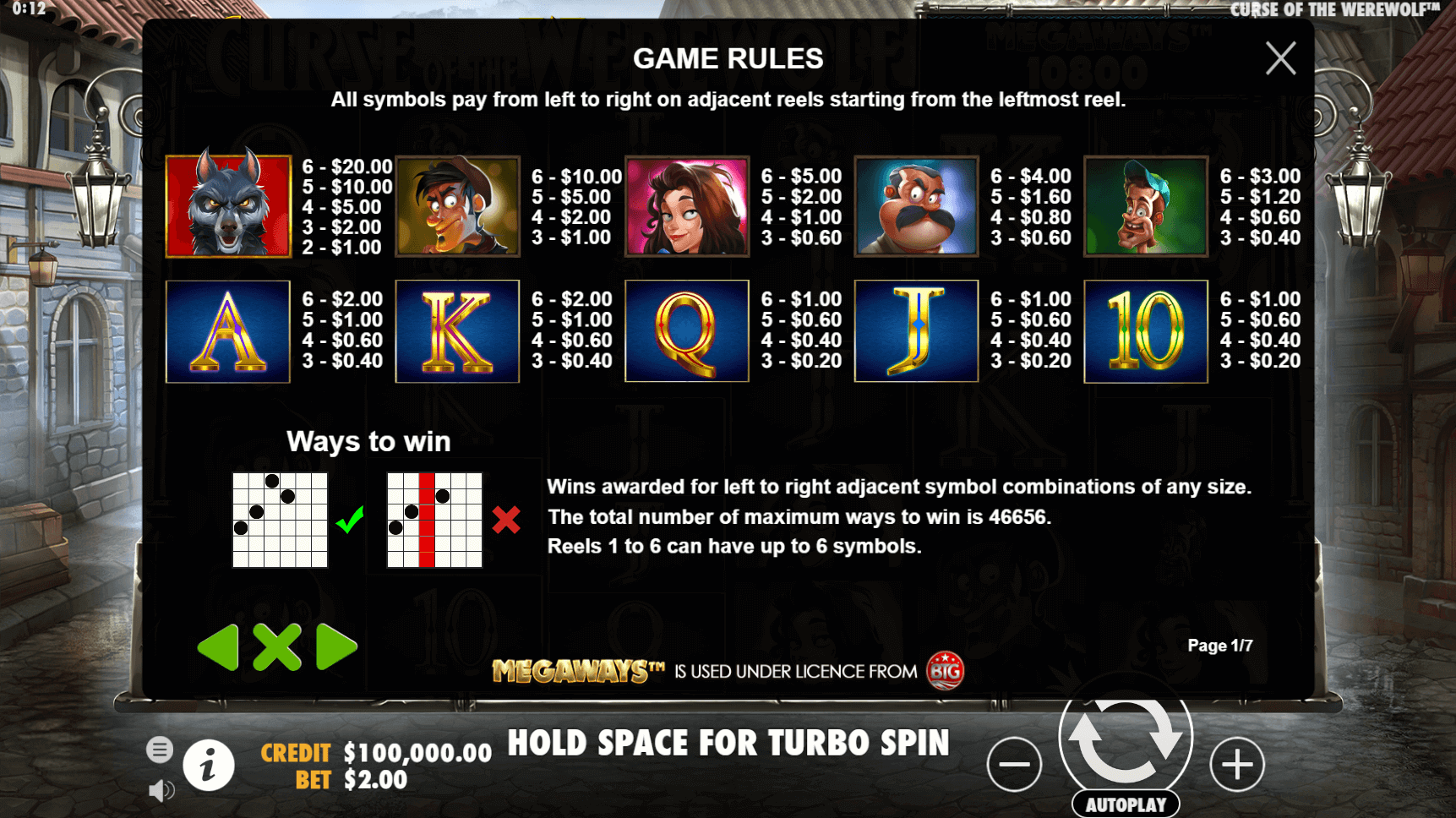 Compared to Wolf Rising, another werewolf-based slot machine, Curse of the Werewolf Megaways is on a completely different level in terms of structure and risk. Wolf Rising sticks to a more traditional 5x8 layout with 100 paylines, and its bonus feature—stacked wilds and free spins—is straightforward and low-risk. Its volatility is far lower, and the maximum win doesn’t come close.