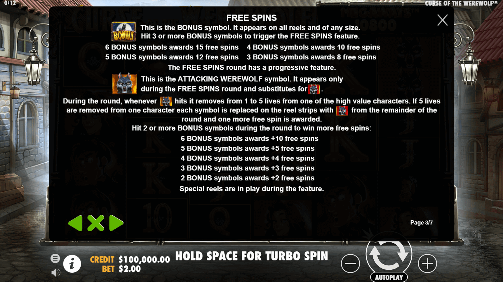 The Free Spins, triggered by 3 to 6 scatters, feature yellow werewolves that knock out premium symbols. When I eliminated a symbol, it turned into a red werewolf with better payouts, and I earned extra spins each time. Random modifiers like stacked high symbols and guaranteed wins also helped break up the dry spells.