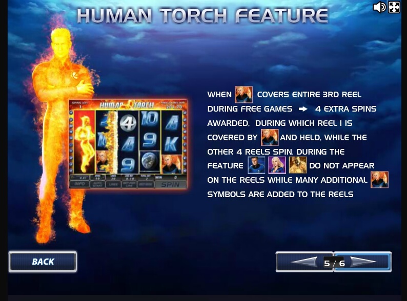 The same thing is about her brother – Johnny Storm. This guy can fire himself, so it’s obvious that he can blow some slots, using his special ability. Collect a couple of symbols with this character to provide a big amount of money.