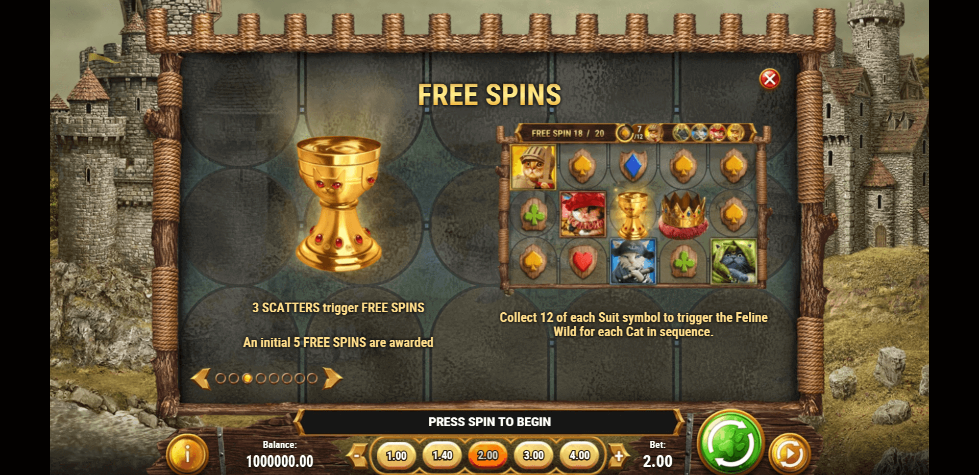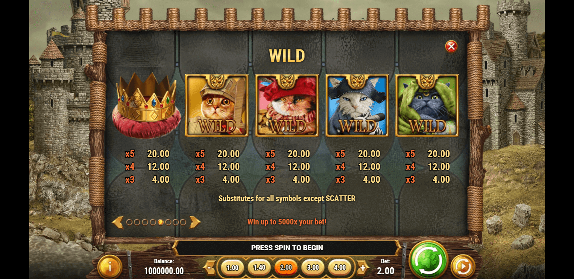 First off, I have to say I was entertained by the quirky ‘humanised Medieval cats’ theme of this online slot. The soundtrack reflected the tension of cats defending a castle in a way that immersed me in the game.