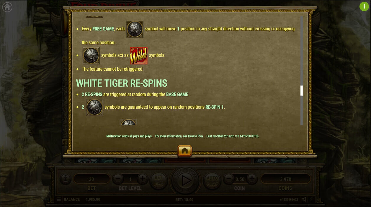 3. “White Tiger”. Before the beginning of the round, there will be two shields that perform the wild functions. In each round, these pictures will be shifted.