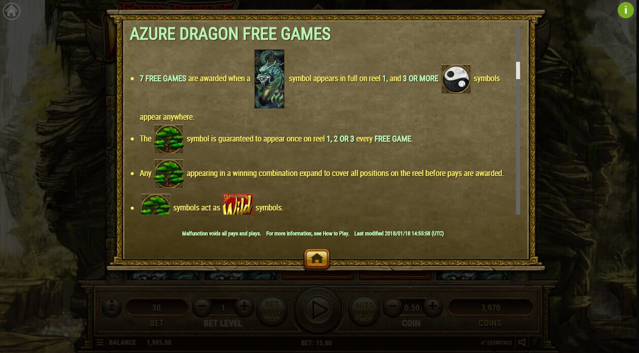 1. “Azure Dragon”. During each spinning, a tree will appear that performs the functions of the wild symbol.