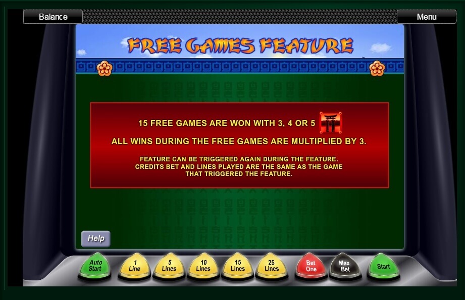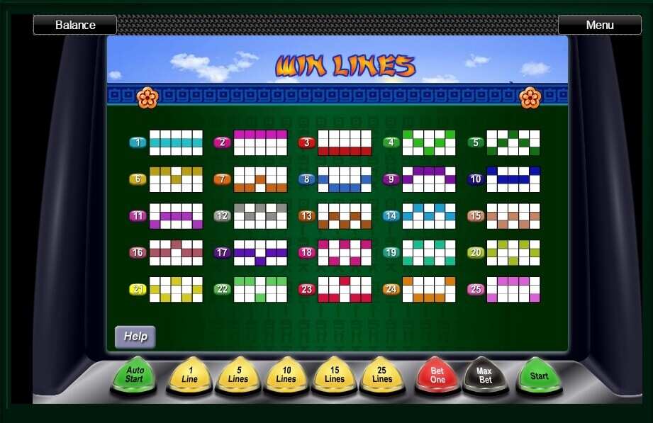 The next point we have to mention is one of the main slot characteristic. As you can see, Geisha by Aristocrat is a five-reel slot with twenty fixed active paylines. Each payline points out the way for the player to win.