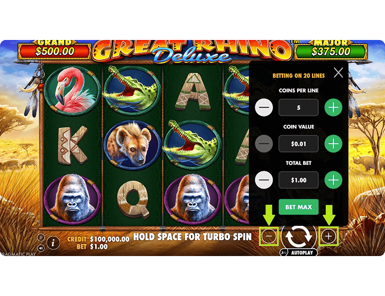 Filling the screen with 14 or 15 rhinos will reward you with one of the two jackpots: