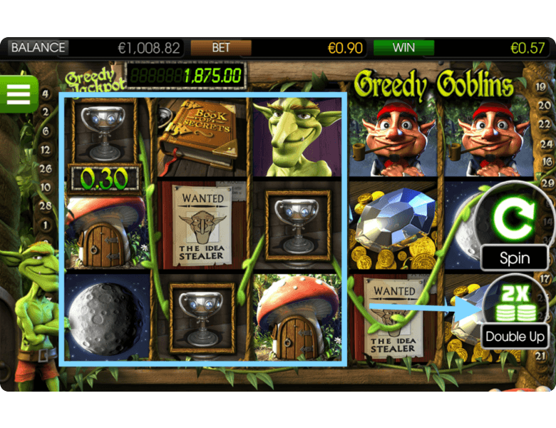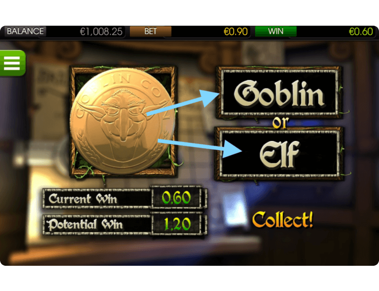 Another Greedy Goblins bonus is the Double Up feature, which allows players to double almost any payout, excluding wins from bonus rounds or the Jackpot. After a winning combination appears, the player can flip a coin by choosing either a Goblin or an Elf. If the guess is correct, the spin’s winnings are doubled. This round can be repeated multiple times in a row, but a wrong guess results in losing the entire payout from that winning combination.
