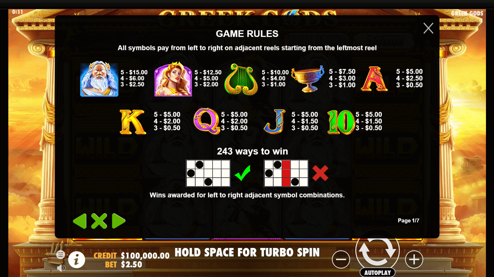 Compared to Gates of Olympus, which bombards you with tumbling symbols and rising multipliers, Greek Gods feels more contained and measured, focusing on discrete, high-impact bonus triggers rather than constant visual chaos.