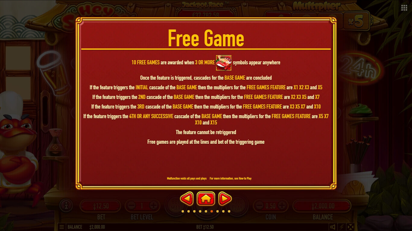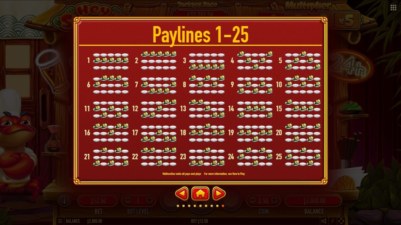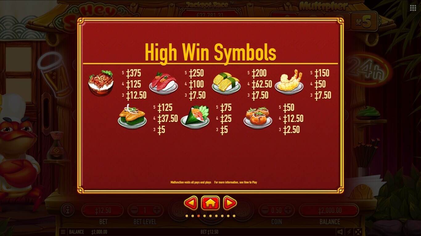 Hey Sushi shines visually with cartoon sushi symbols: crabs, prawns, rolls, etc. They're animated charmingly and set against a sushi bar backdrop. Animations are smooth and expressive, and the soundtrack mixes cheerful asian melodies with sizzling kitchen effects. I enjoyed the design of the crab chef: his animated reactions and cheerful shouts added a playful touch to the overall experience. The audio loop felt repetitive sometimes, but it captured the restaurant vibe better than many food-themed slots, like Chinese Kitchen slot, which is visually simpler and less interactive.