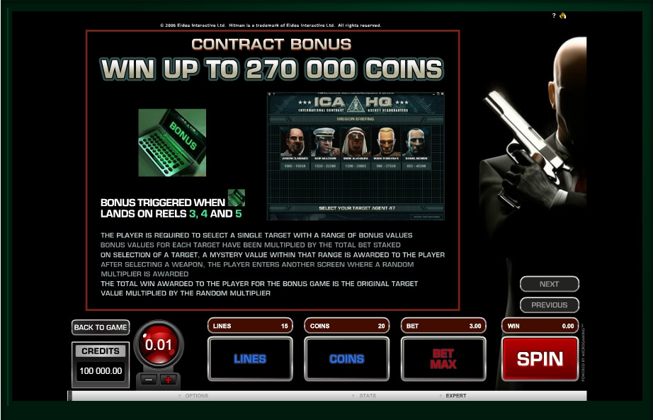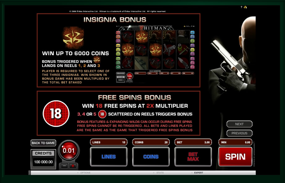 The Hitman gaming machine has everything you need to be called amazing: balanced gameplay, saturated with bonuses and secret levels, a lot of winning combinations and, of course, generous and frequent payments. Beginners can experience their luck if they play Hitman in free mode without registration in a casino with the Microgaming affiliate license, and experienced players can immediately bet real money and hunt for the top prizes.