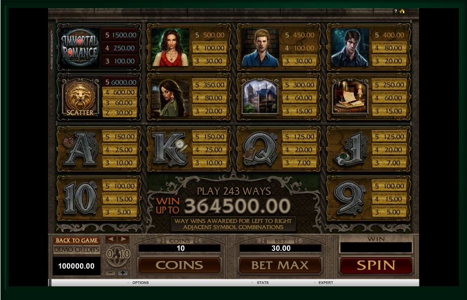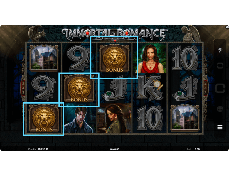 Players will clearly appreciate Microgaming’s approach to bonuses — the slot game Immortal Romance features four distinct bonus modes. Over time, players can choose which mode they’re willing to take a risk on, as each one comes with its own mechanics and advantages. Below is a detailed breakdown of each option.