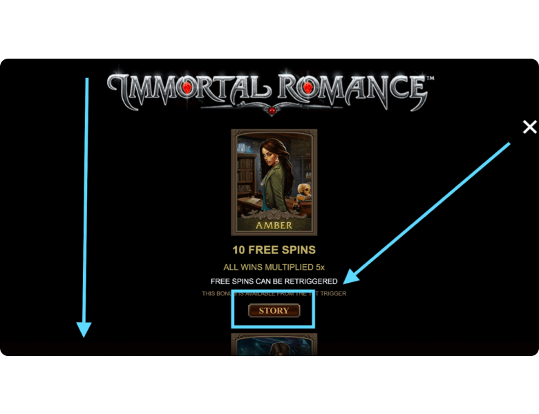 Michael — 20 FS. If a player stays in the game long enough and lands at least 3 Scatter symbols ten times, this bonus mode becomes available. In this case, Immortal Romance launches 20 free spins featuring the unique Rolling Reels mechanic. Winning combinations are removed from the reels, allowing new symbols to cascade into place. With each cascade, the Multiplier increases, starting at x2 and rising up to x5.
