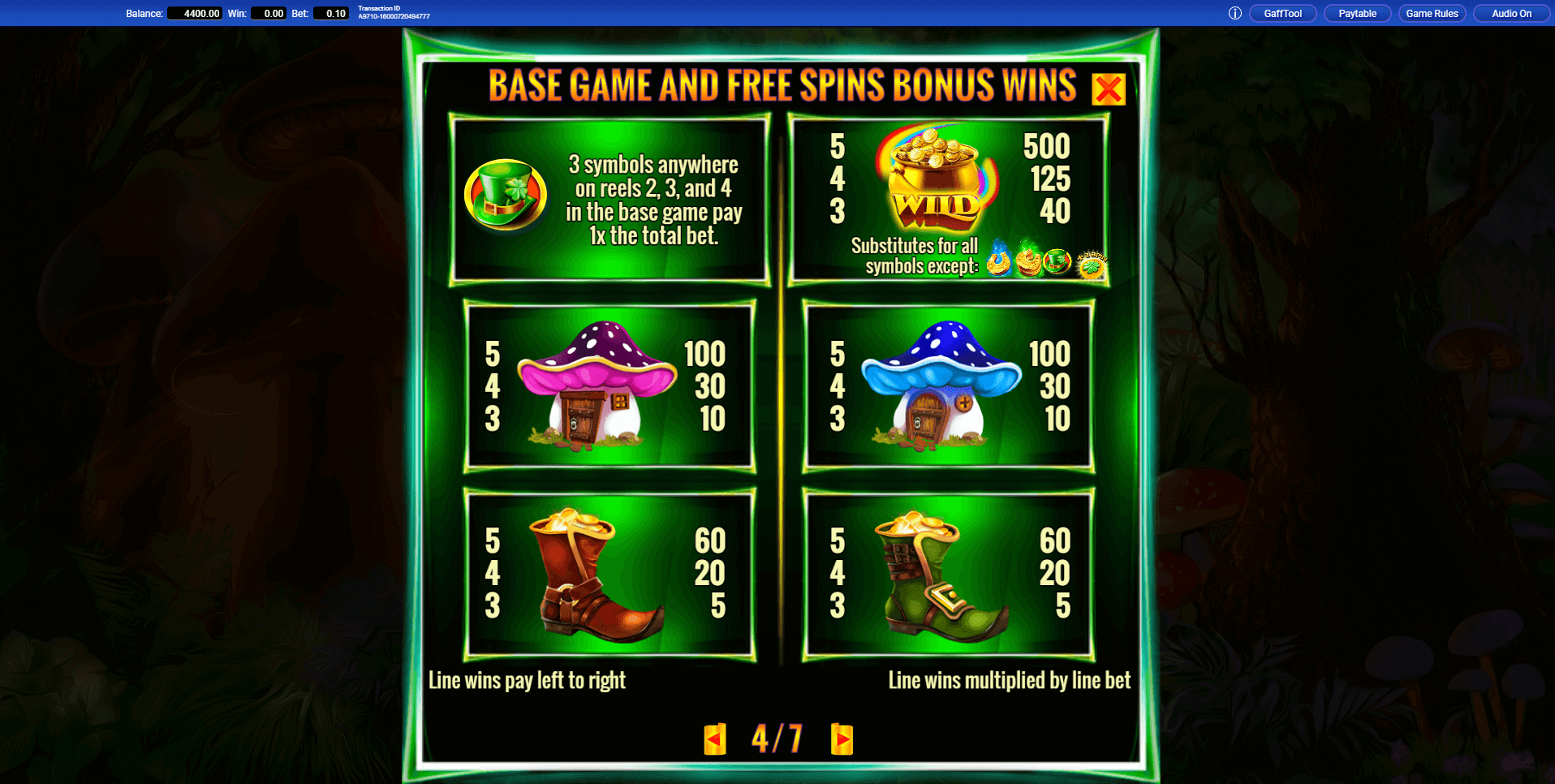 Start the no download slot game, then click X to close the welcome screen and reveal the reels. For payout information, open the Paytable in the upper-right corner — it lists all symbols and their multipliers. Next to it, you’ll find the Game Rules section, which explains the main conditions and bonus features.