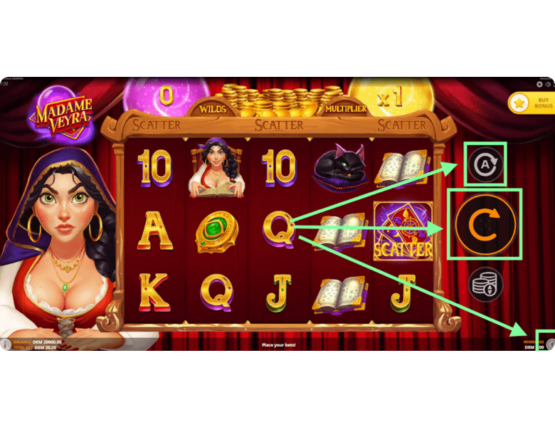 You can enjoy free play for fun right on this page — players have access to the demo version of Madame Veyra from the provider. We offer an online slot with no registration and no download, along with a simple step-by-step guide to help you get started.