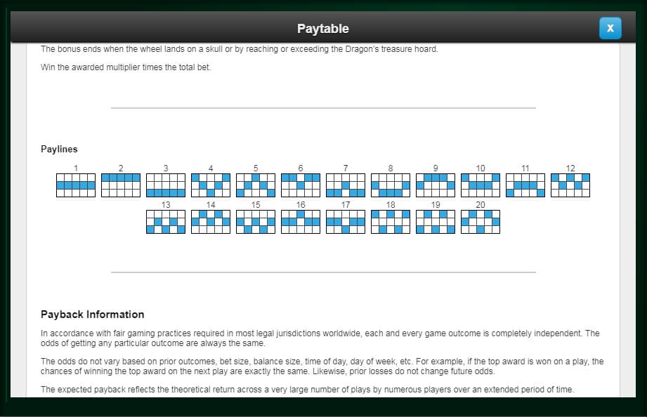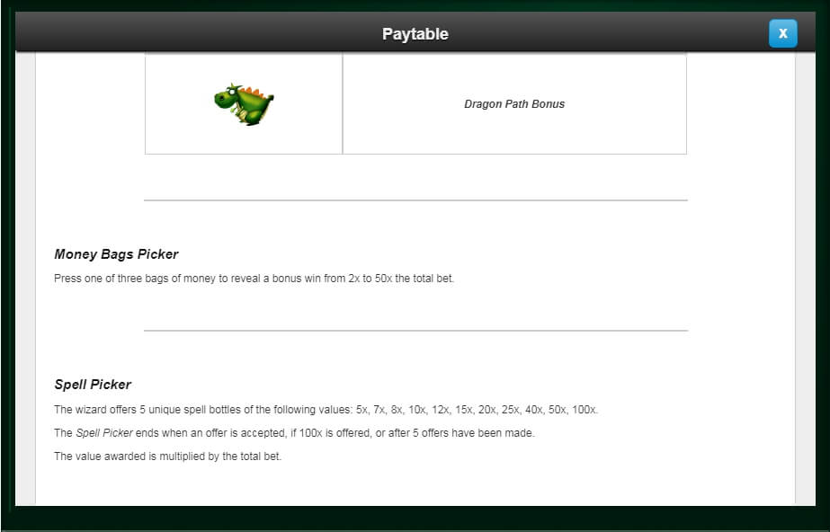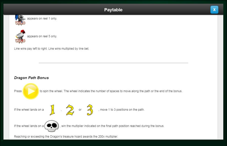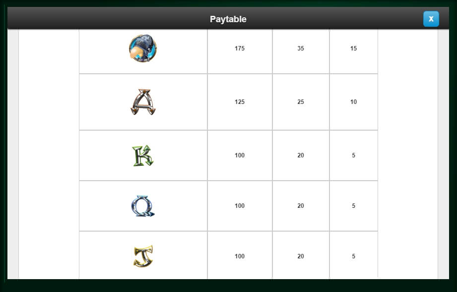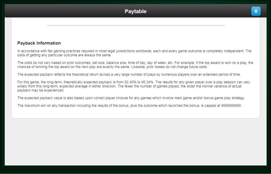 In the upper right corner there are two arrows that open access to the additional sections. The tab “paytable” is located here, it contains information about the symbols, rules and structure of the gaming machines. On the left side, there is a green button.
