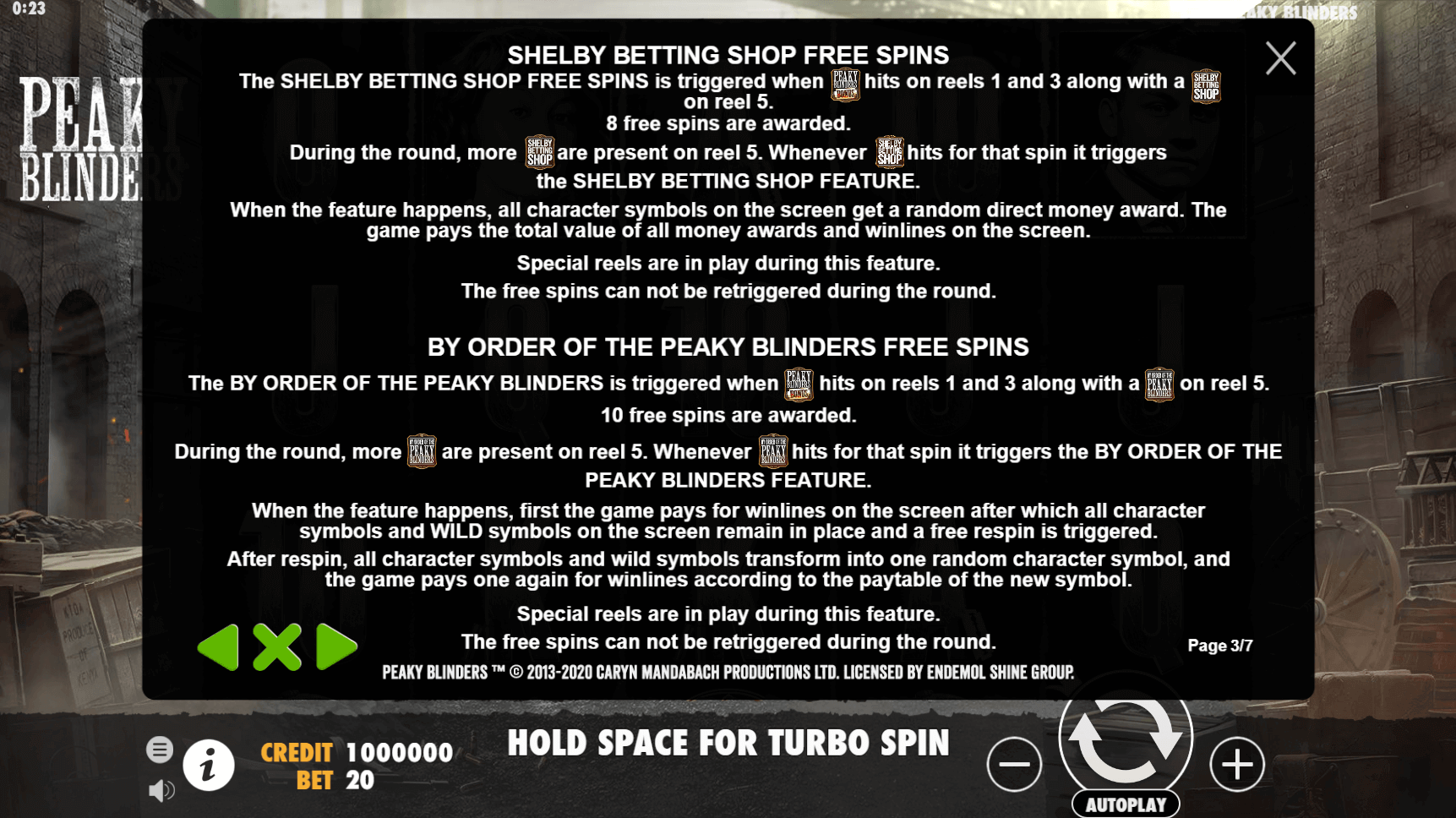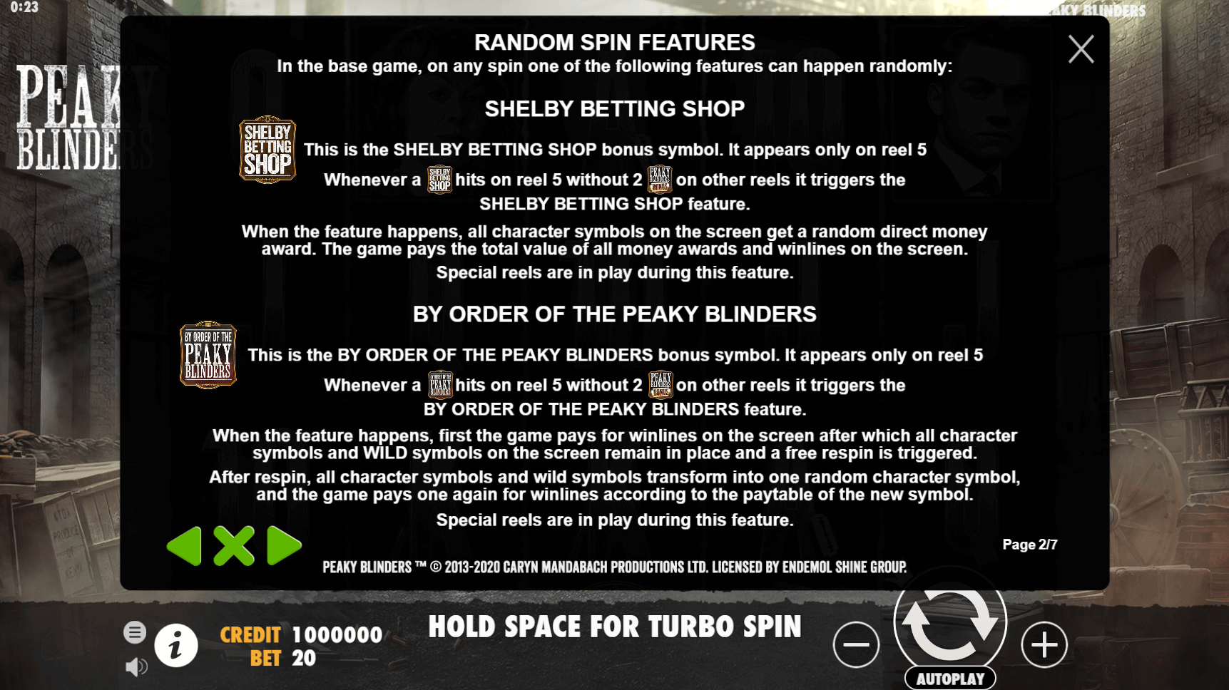 What makes this slot machine stand out are the two unique free spin features, each tied to a specific modifier. When By Order of the Peaky Blinders is activated, all character symbols become sticky, and a single spin determines the payout. Meanwhile, the Shelby Betting Shop feature totals all character values on-screen and pays them instantly. Wild symbols and regular base-game payouts fill in the gaps between bonus triggers.