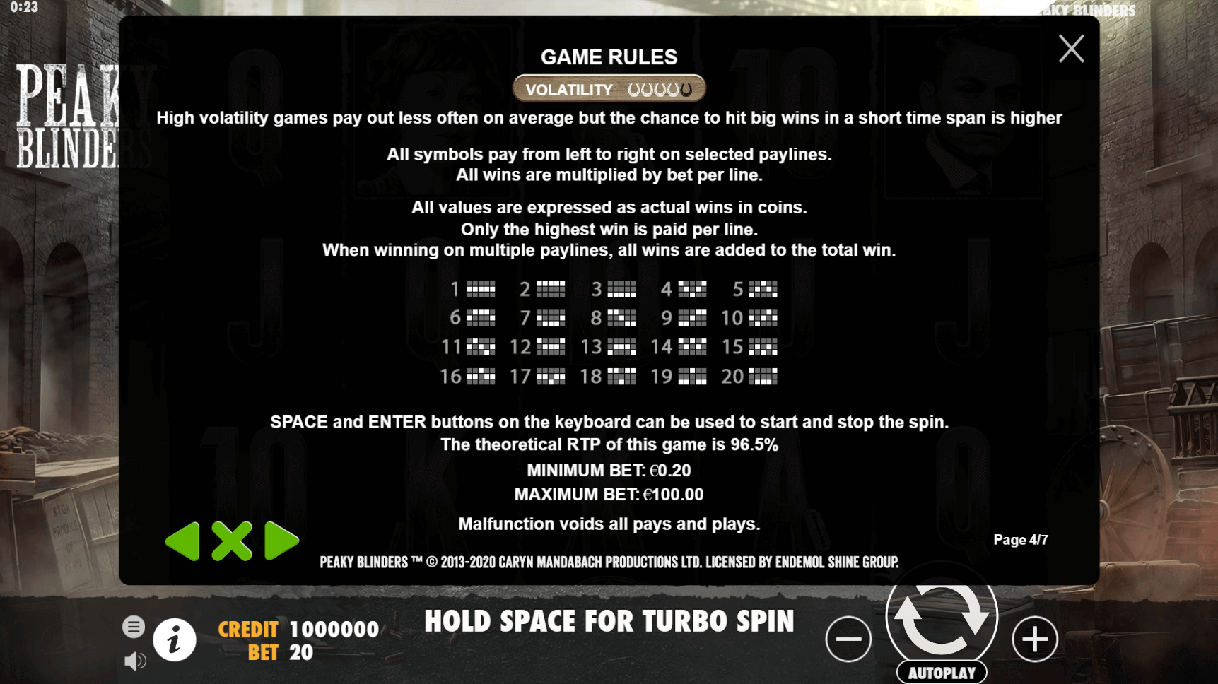 I instantly felt how Peaky Blinders builds suspense from the moment I loaded the no-download demo. It’s not a slot overloaded with features, but two different bonus rounds offer enough variation to keep things interesting. However, the medium-high volatility was noticeable: big wins were rare but satisfying.