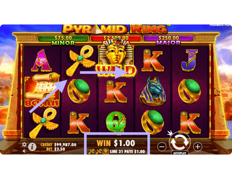 Wild. As with most Pragmatic Play slots, Pyramid King features a Wild symbol in the form of a golden pharaoh’s mask. This symbol can appear on all reels and substitute for any standard symbol. As a result, winning combinations are formed that might not have been possible otherwise. Additionally, the Wild symbol is valued as the highest-paying symbol.
