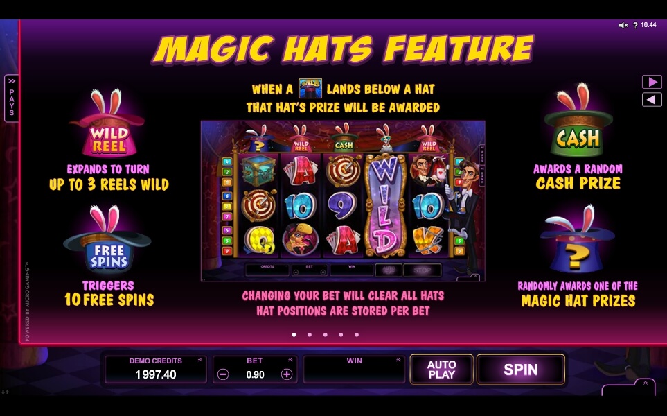 In the Rabbit in the Hat Slot, there is a pretty nice automatic-game mode that you can activate by your wish. All symbols that you will ever meet are related to the world of tricks: a round red and white target pierced with daggers; a big beautiful bluish trunk decorated with golden ”stars” and ”moons” is locked; jumped Robby Longears; two gray chains are fixed around the reservoir with water; a bright-red ”A” is ”standing” in front of the cards; two steel hoops are put on the orange ”K”; a ribbon is passed into the bright-yellow ”Q”; around the green ”J” is surrounded a long chain from the clock; a sky-blue ”10” and a violet ”9”.