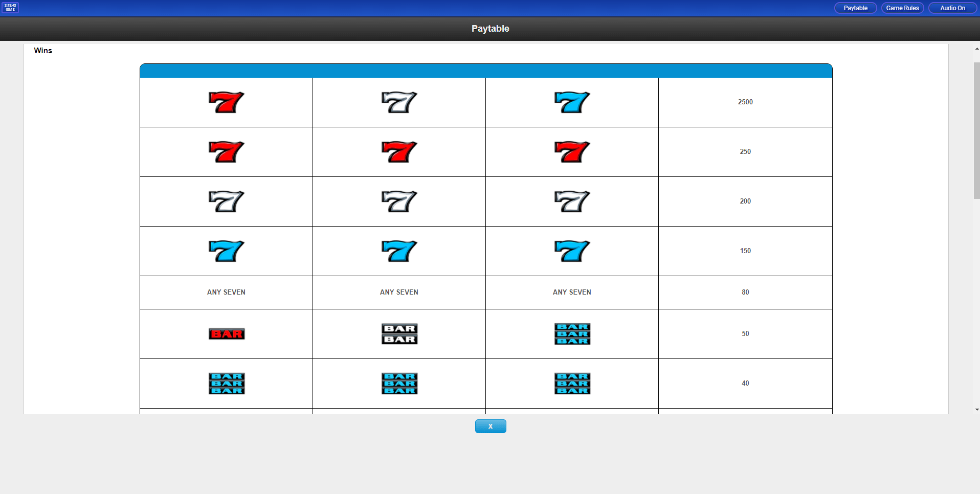 The pure "classic" pacing of Red White and Blue from IGT brings the core of slots to the forefront. The 777 theme has been done many times before, but never as stripped down as it is here. With a 93.98% RTP, medium variance, and a traditional single-line slot with fixed symbols, no bonus games, and no free spins, this slot is as far away from modern slots as you can get. Max bets are 100, and the minimum bets start at .05. As clean and direct as you'll find a slot, Red White and Blue leaves nothing to the imagination.