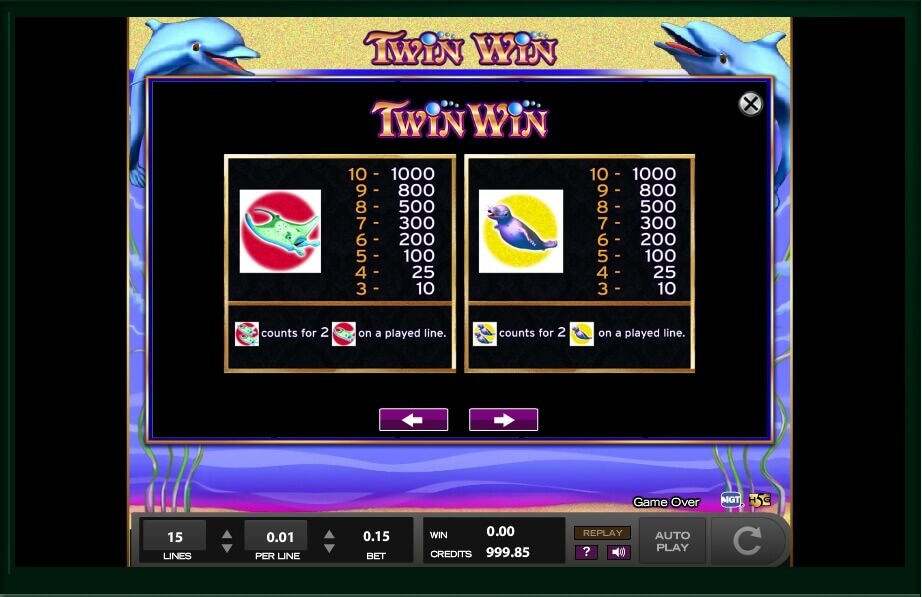 However, that is not everything interesting that is waiting for those who decided to play such a bright slot game! Scatter symbols can be met only on the second, the third and the fourth reels in the game. They will give the player a chance to boost cash x100 times! There are no free spins and well as players won’t be able to find a bonus game in the list of features available in Twin Win, but it doesn’t make this game less interesting at all!