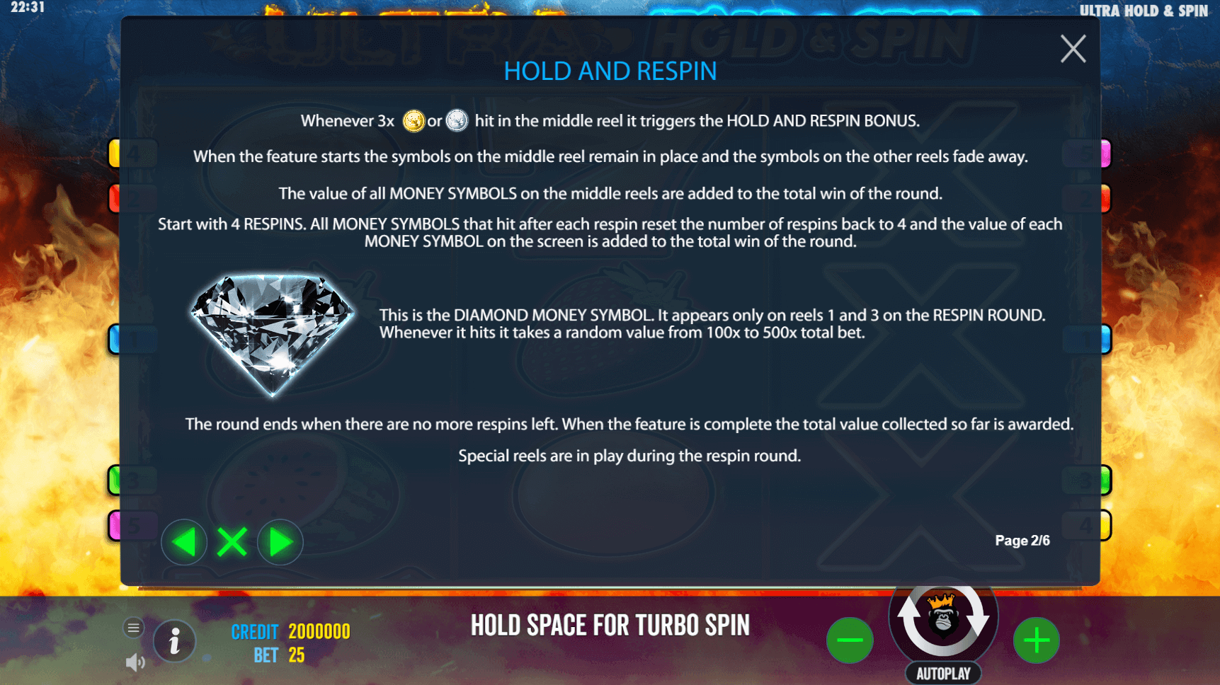 In the base game, I was hitting wins across the 5 fixed paylines, mostly from fruit symbols. Wilds expanded to fill entire reels when part of a win, often rescuing spins that looked like dead ends. The Hold & Respin round was where I saw the real potential—landing three Money Symbols on the middle reel gave me four respins to collect more coins. Each new coin reset the counter, and the diamond coins were the real thrill, paying between 100x and 500x my bet.
