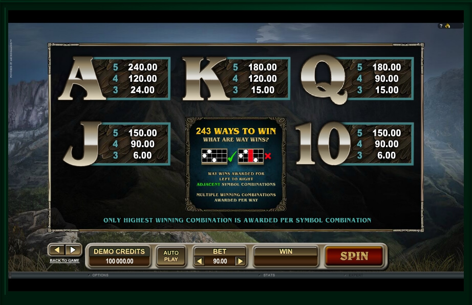 Like you might have guessed, the slot machine contains a lot of interesting combinations to become rich. You can’t win big prizes without following the simple rule of collecting the matching lots on the same paying line. If the player combines at least three eagle eyes within same row, he/she will increase the winning rate for a couple of times.