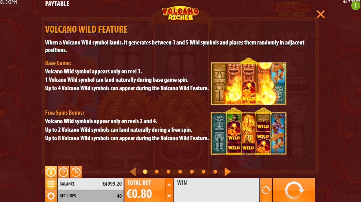 Here the guest will be awaited by a convenient and functional control panel. Volcano Riches also offers quality modern graphics that are filled with animations and 3D images. In a word, you’ll get a lot of pleasure and emotions!