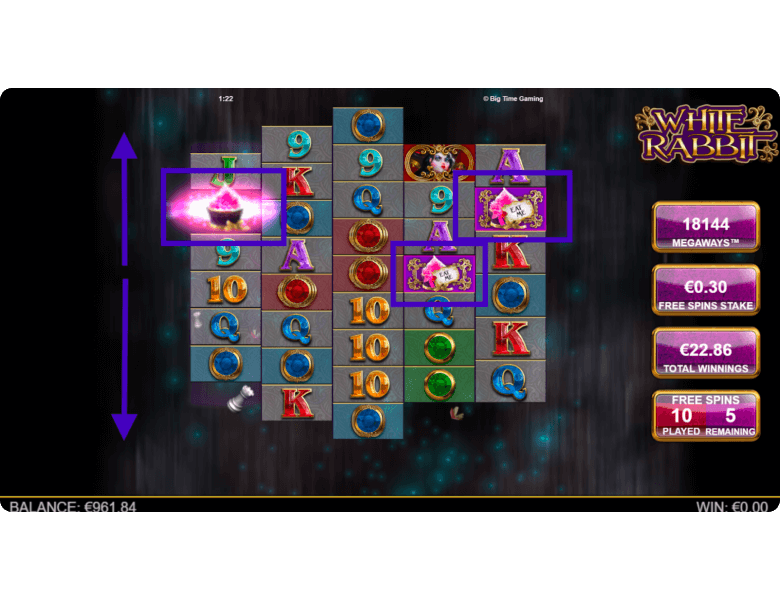 This is the core mechanic of White Rabbit. The online slot uses five reels, but the number of symbol rows on each reel changes with every spin, ranging from 2 to 7. As a result, the game can offer up to 16,807 ways to win in the base game and up to 248,832 ways when the grid expands during the free spins feature.