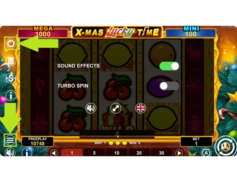 The mix of classic fruit symbols with Christmas-themed elements and gift boxes looks familiar and, to me, even a bit plain. That said, the atmosphere is light and festive, without overwhelming visual effects. The traditional bell sounds are pleasant, though for a fuller holiday vibe, I personally missed a warmer soundtrack: something along the lines of a soft jazz melody.